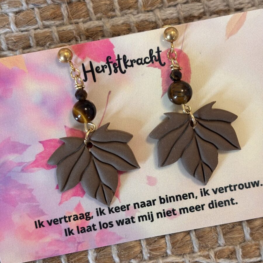 In de herfst laten bomen hun bladeren los om ruimte te maken voor nieuw leven. Deze oorbellen herinneren je eraan om ook zelf los te laten wat niet langer dient – en te vertrouwen op de natuurlijke energie van verandering.