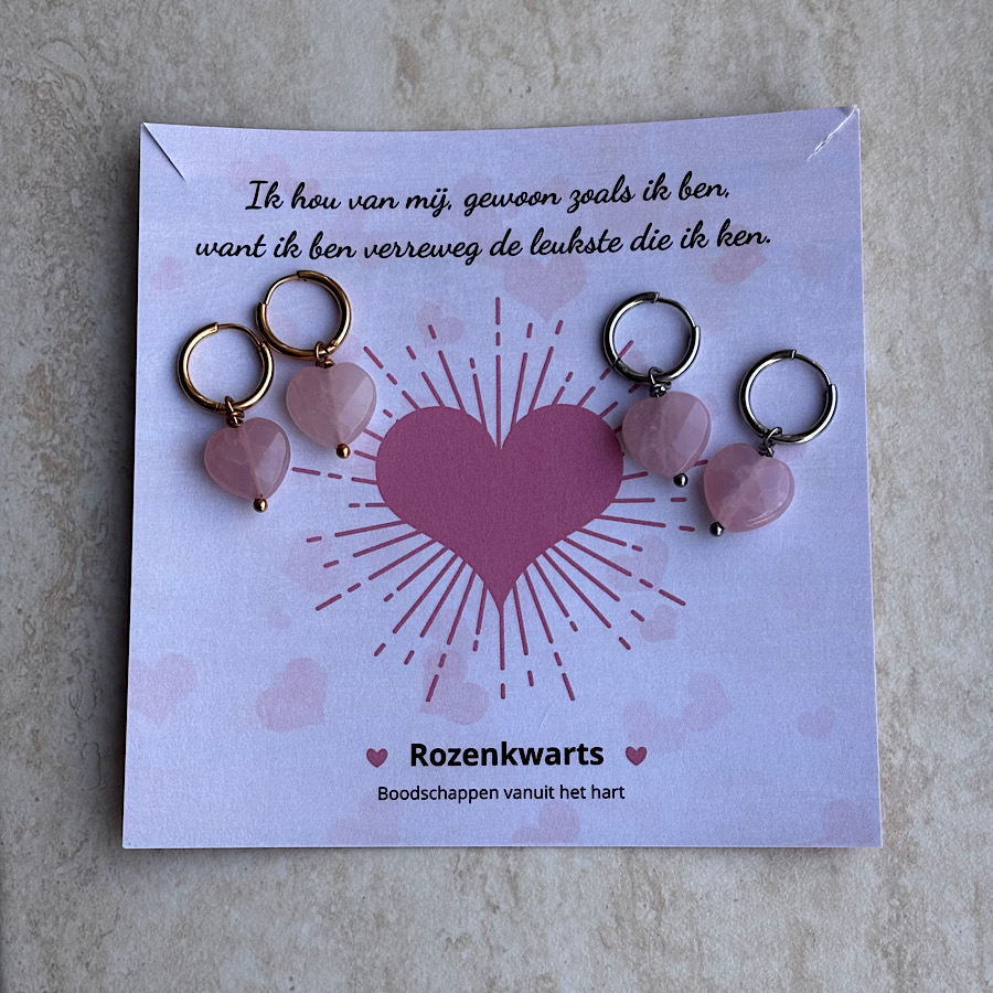 Oorbellen met edelstenen – Ik hou van mij | Rozenkwarts