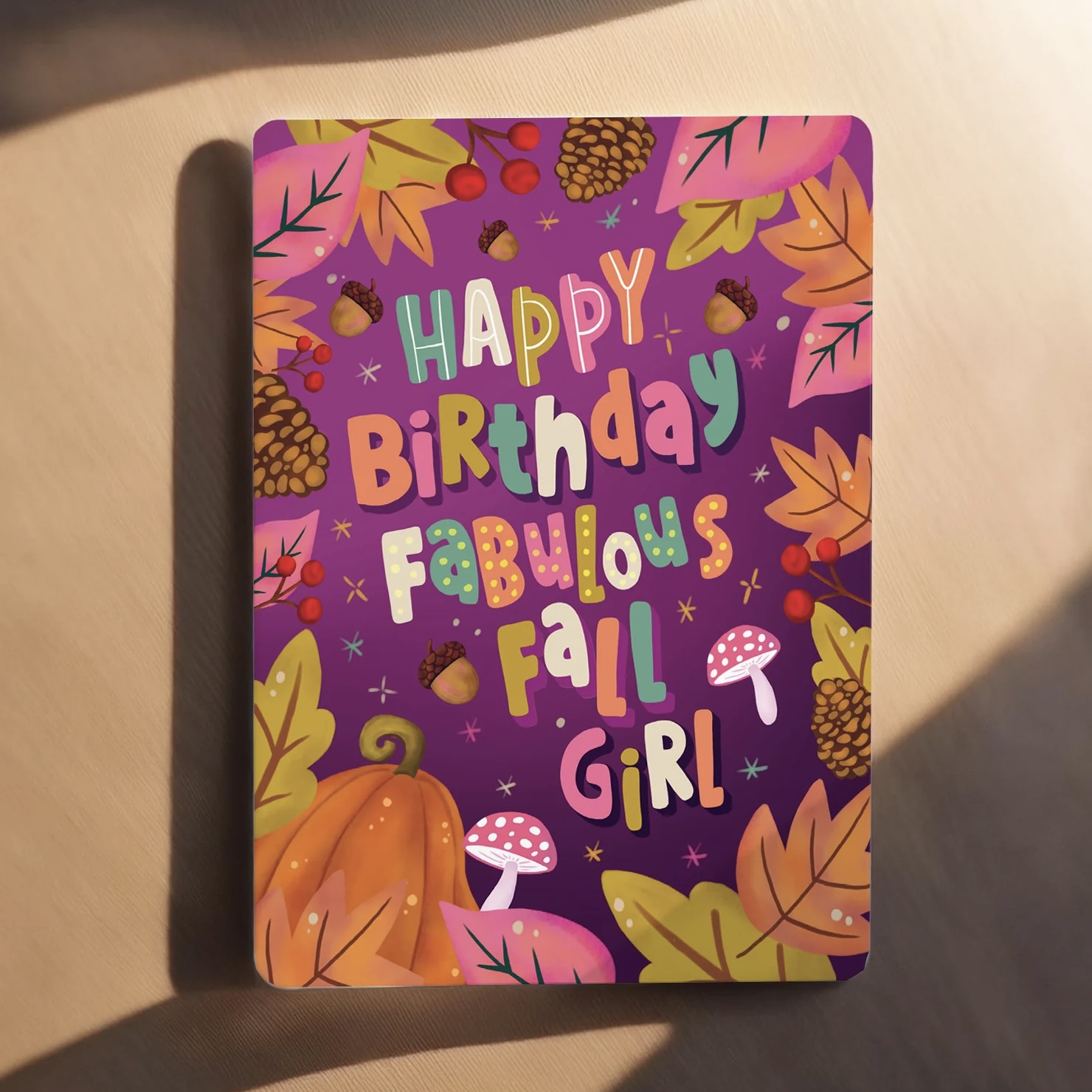 Verras iemand met een warme, gezellige én unieke boodschap dit najaar met deze sfeervolle herfst postkaart happy birthday fabulous fall girl. De kaart is liefdevol geïllustreerd in herfstthema en draagt de vrolijke tekst: “Happy birthday fabulous fall girl”. Perfect om naar iemand te sturen die je een leuke verjaardag wenst. In een wereld waar we vooral digitaal communiceren is een handgeschreven kaart nog altijd het leukst om te mogen ontvangen. Er is dan oprecht moeite gedaan voor jou en dat geeft een speciaal gevoel.