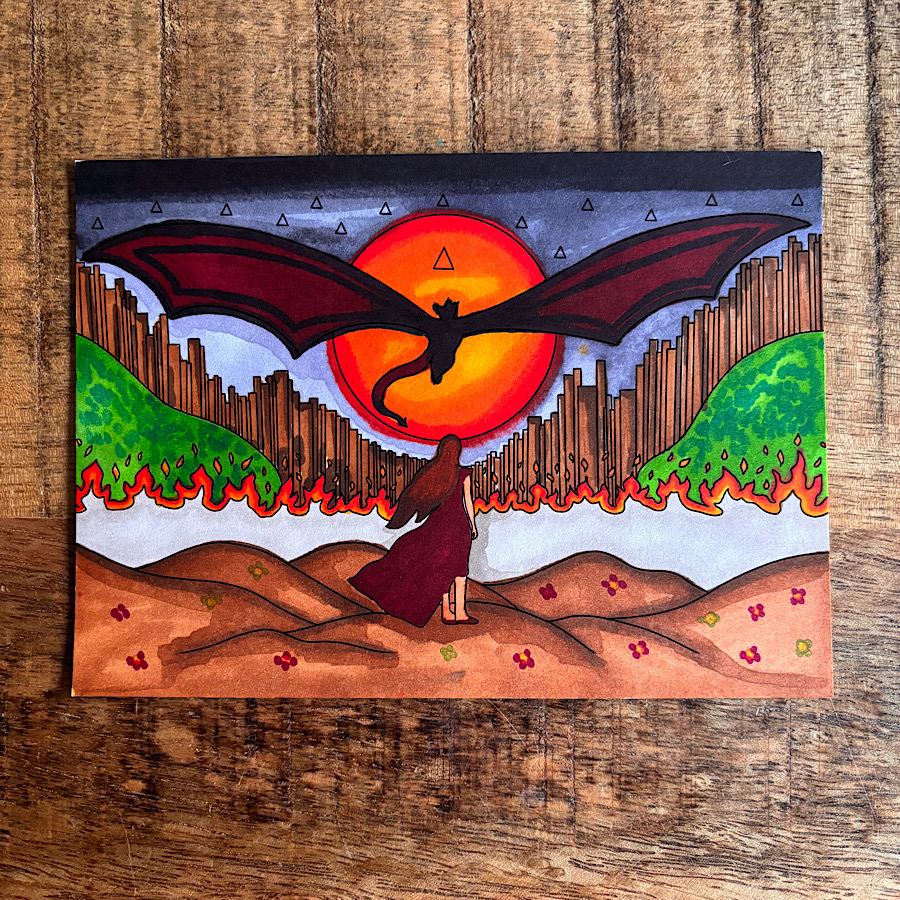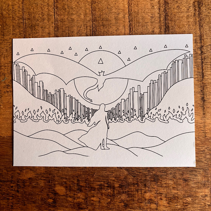 De postkaart vuur kun je zelf inkleuren. Laat je creativiteit stromen. Deze bijzondere kaart is niet alleen een uitnodiging tot creatief ontspannen maar heeft ook een diepere symbolische betekenis.