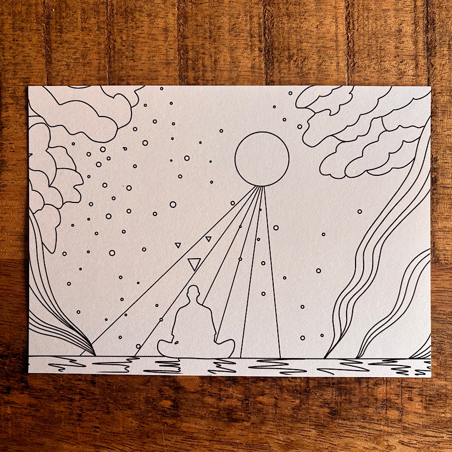 De postkaart water kun je zelf inkleuren. Laat je creativiteit stromen. Deze bijzondere kaart is niet alleen een uitnodiging tot creatief ontspannen maar heeft ook een diepere symbolische betekenis.
